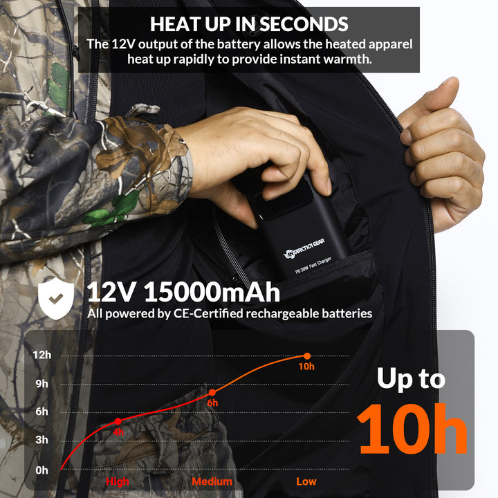 Complete Winter-Ready Package:Includes: 1x Heated Hunting Jacket (S-3XL), 1x 15000mAh Battery Pack, 1x Instruction Manual.