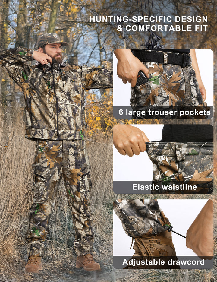 Hunting-Specific Camouflage Pattern & Comfortable Design: The Heated Hunting Pants feature the Next G2 traditional hunting pattern, with the widest format of leaf and branch designs on the market. This enhances the visual effect and detail, creating a stronger sense of depth and making you more camouflaged in the wild. The pants are equipped with an elastic waistband, providing excellent comfort and a snug fit, ideal for long periods of wear.