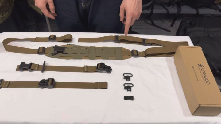 - 2 Point sling securely attaches rifle over your shoulder to your pack, but keeps it easily accessible and deployable. One-handed, quick-adjustment system for lengthening/ shortening sling