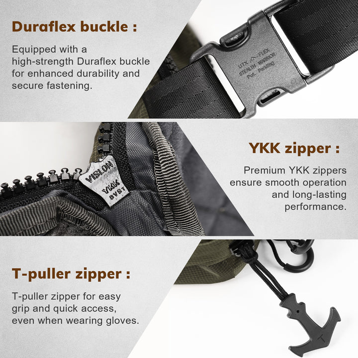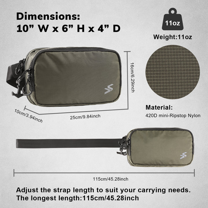 Multi-Position Carry — Wear as a waist pack, cross-body sling, or off-body carry using the integrated adjustable belt (0–55") for versatile everyday carry.